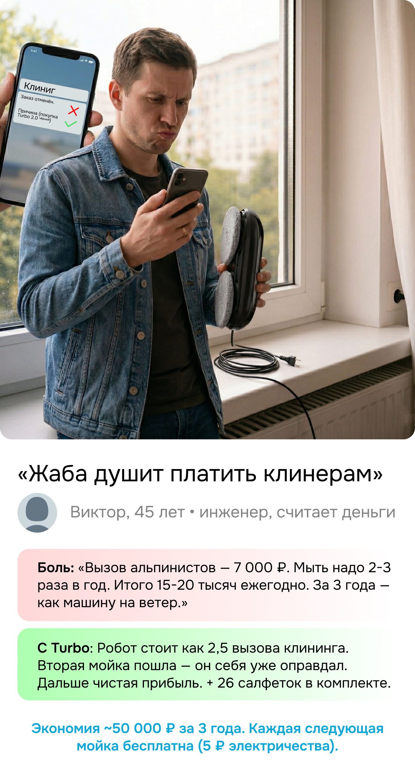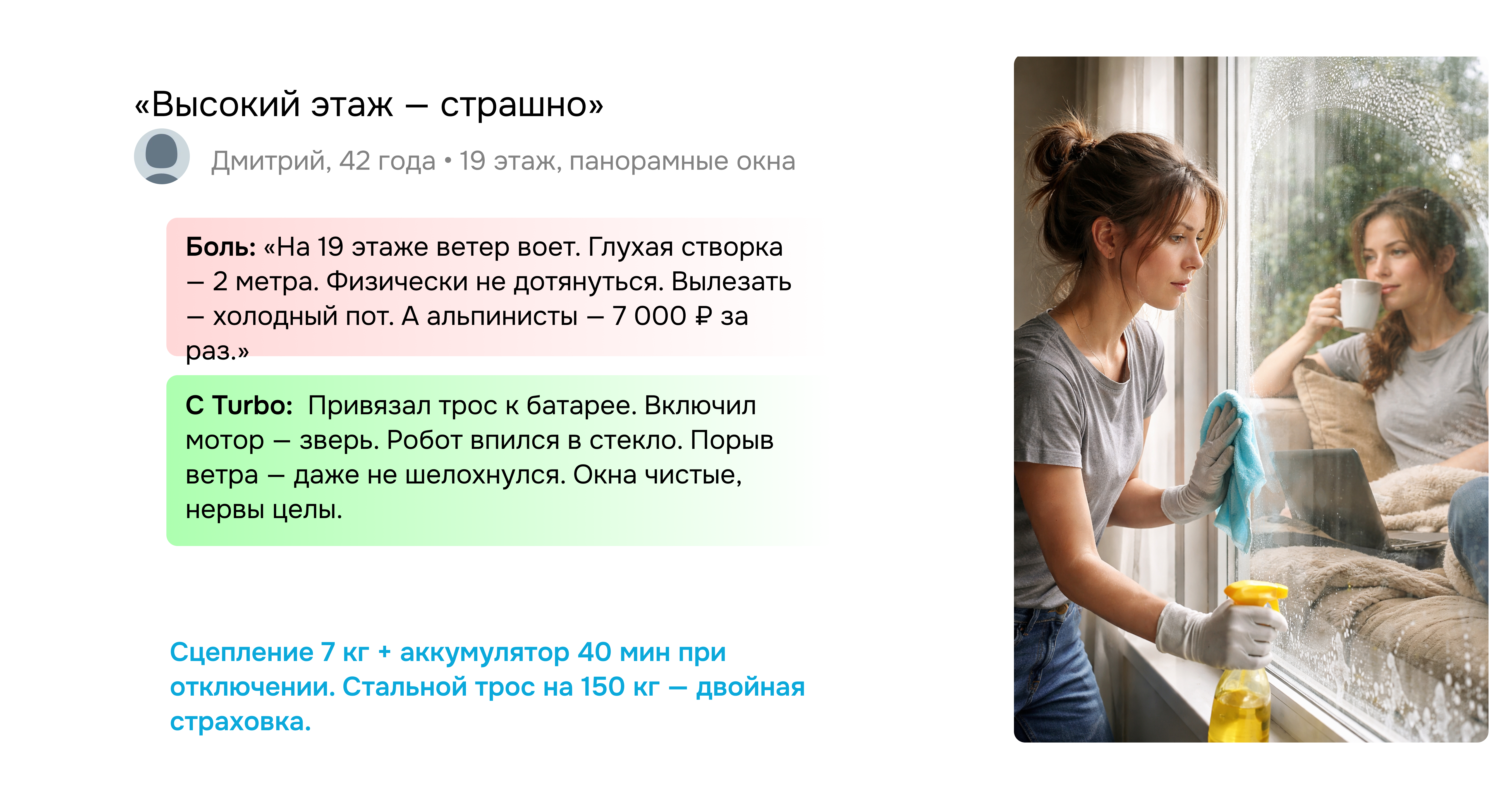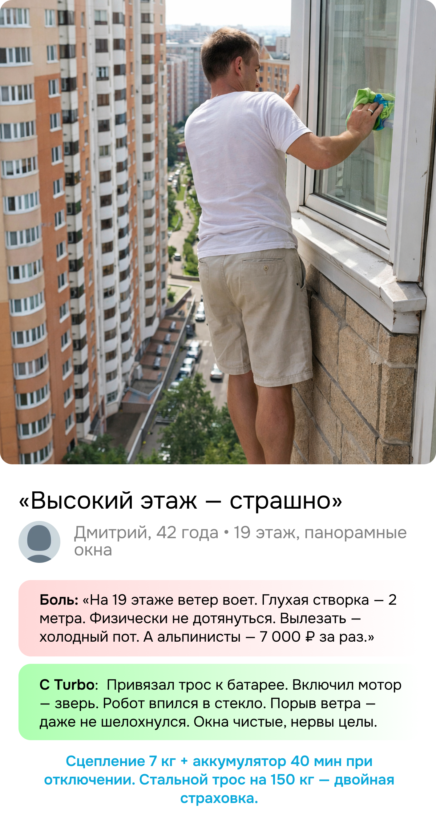 Индивидуальный подбор под ваш конкретный запрос: достаточно описать свои окна или прислать фото — эксперт Cleanbot подберёт модель под ваш тип остекления и этаж.