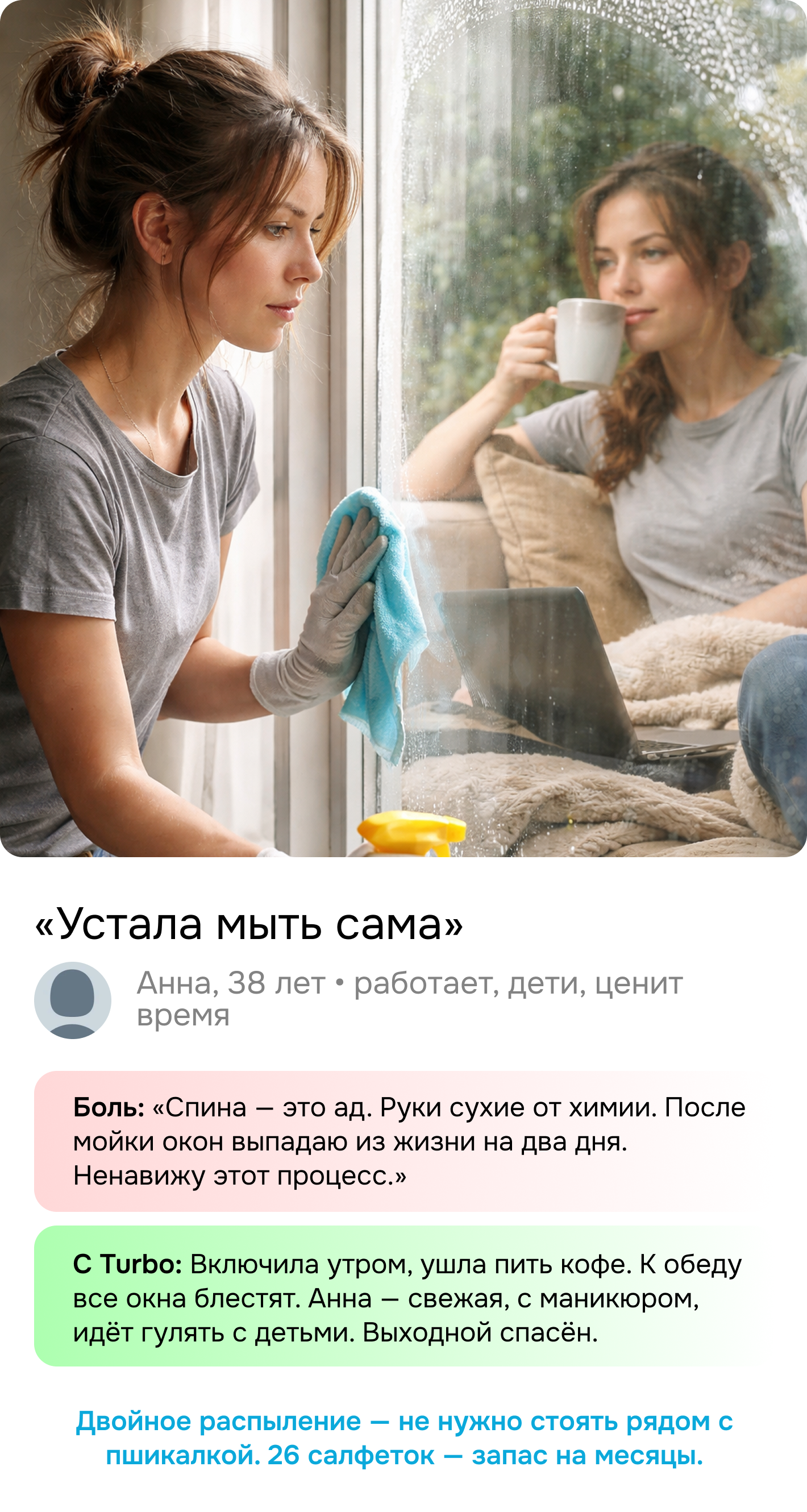 Turbo тихо жужжит на стекле, а вы идёте варить кофе.